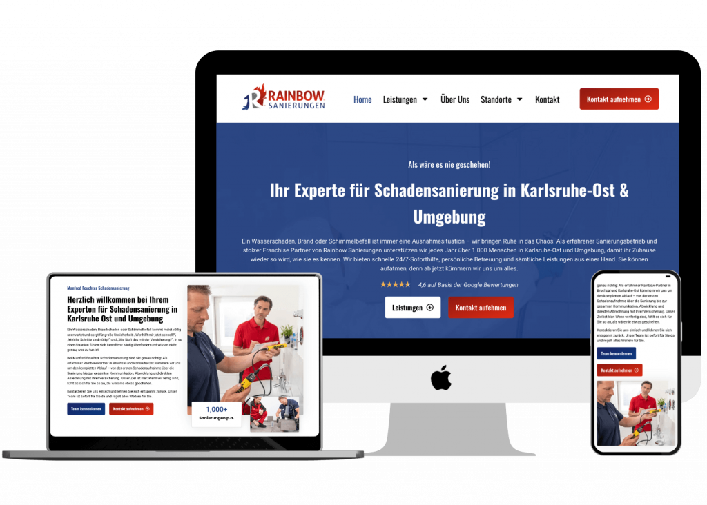 Für Manfred Feuchter Schadensanierung haben wir eine komplett neue Website entwickelt – mit klarem Fokus auf Wasserschäden, Brandschäden, Schimmelsanierung und Leckortung. Ziel war es, Betroffene aus der Region Karlsruhe bis Pforzheim gezielt anzusprechen und bei Google sichtbar zu machen. Neben dem modernen Webauftritt sorgen über 70 SEO-optimierte Fachartikel für starke Rankings und kontinuierlichen organischen Traffic.